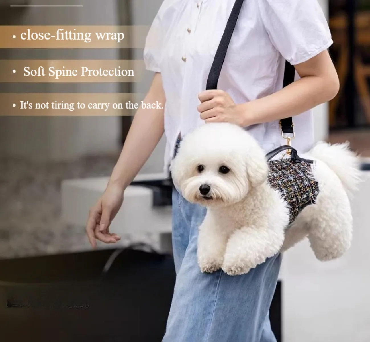 The close-fitting wrap design helps distribute weight evenly, so carrying your pup feels light and natural during walks, errands, and travel. The soft, structured support area helps your dog stay in a relaxed, seated position instead of dangling or shifting around.