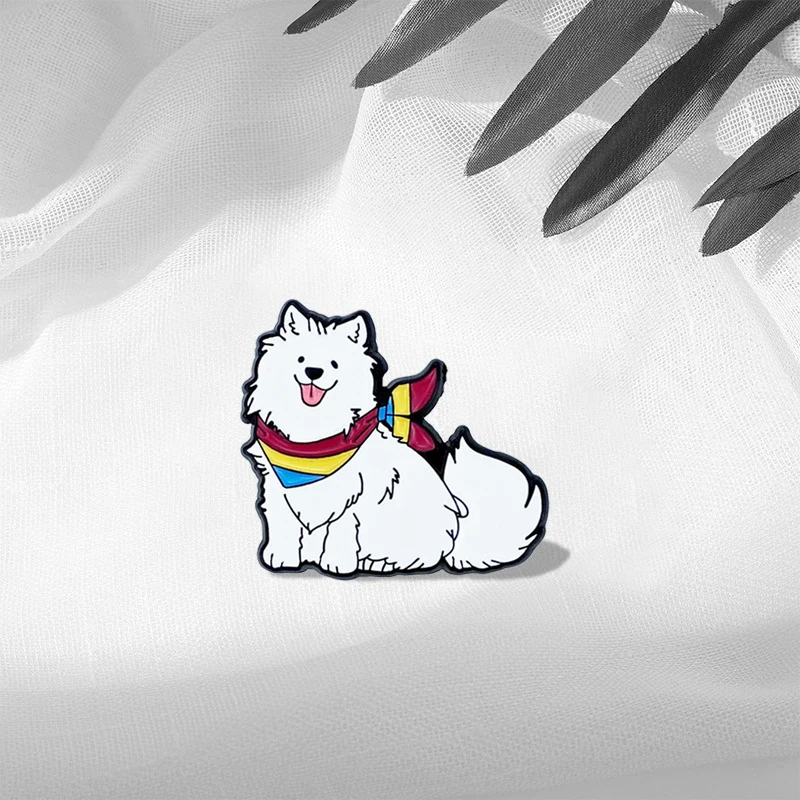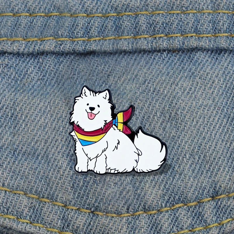 Cute Samoyed Dog Enamel Brooch